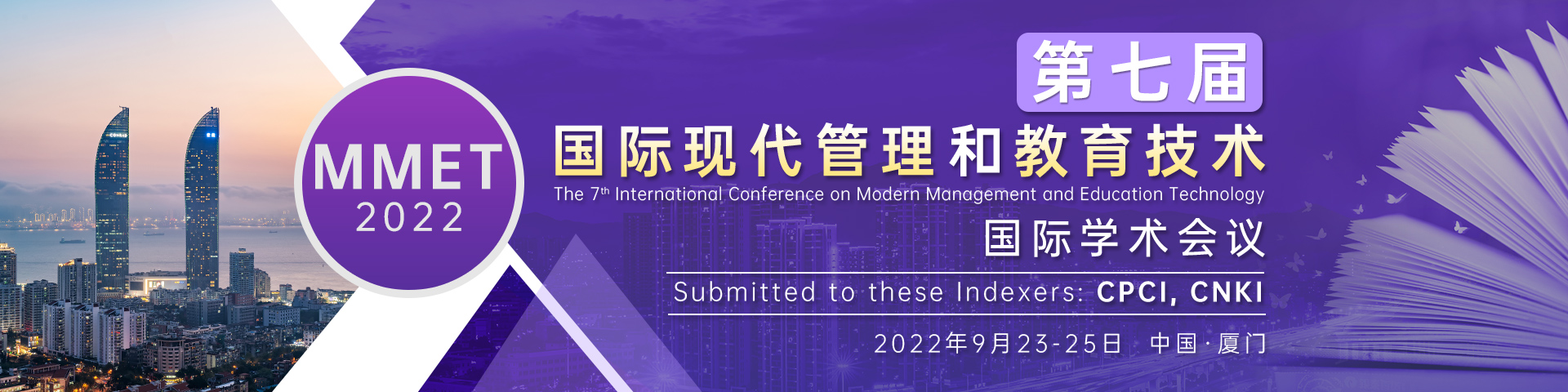 To adapt to this changing world and China's fast development in the new era, 2022 7th International Conference on Modern Management and Education Technology to be held in September 2022. This conference takes "bringing together global wisdom in scientific innovation to promote high-quality development" as the theme and focuses on cutting-edge research fields including Modern Management and Education Technology. MMET 2022 encourages the exchange of information at the forefront of research in different fields, connects the most advanced academic resources in China and the world, transforms research results into industrial solutions, and brings together talent, technology and capital to drive development. The conference sincerely invites experts, scholars, business people and other relevant personnel from universities, scientific research institutions at home and abroad to attend and exchange!